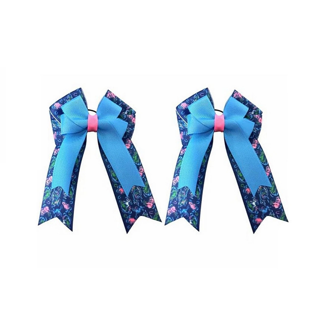 Belle & Bow Equestrian proudly designs and manufactures their premium show bows in Massachusetts, USA. They have a durable elastic attachment loop that is sized for pigtails. Have fun adding the Belle & Bow Equestrian Hair Bows in Australia print to your pony rider’s show attire!