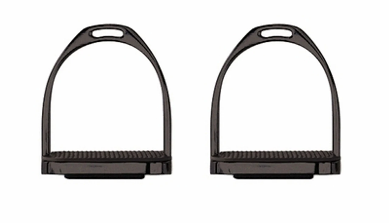 Black Stirrup Irons provide a very finished look against black boots that is very popular at the breed shows. These stainless steel stirrup irons have been powder coated in black. This is a black fillis iron with rubber tread from Perri’s.