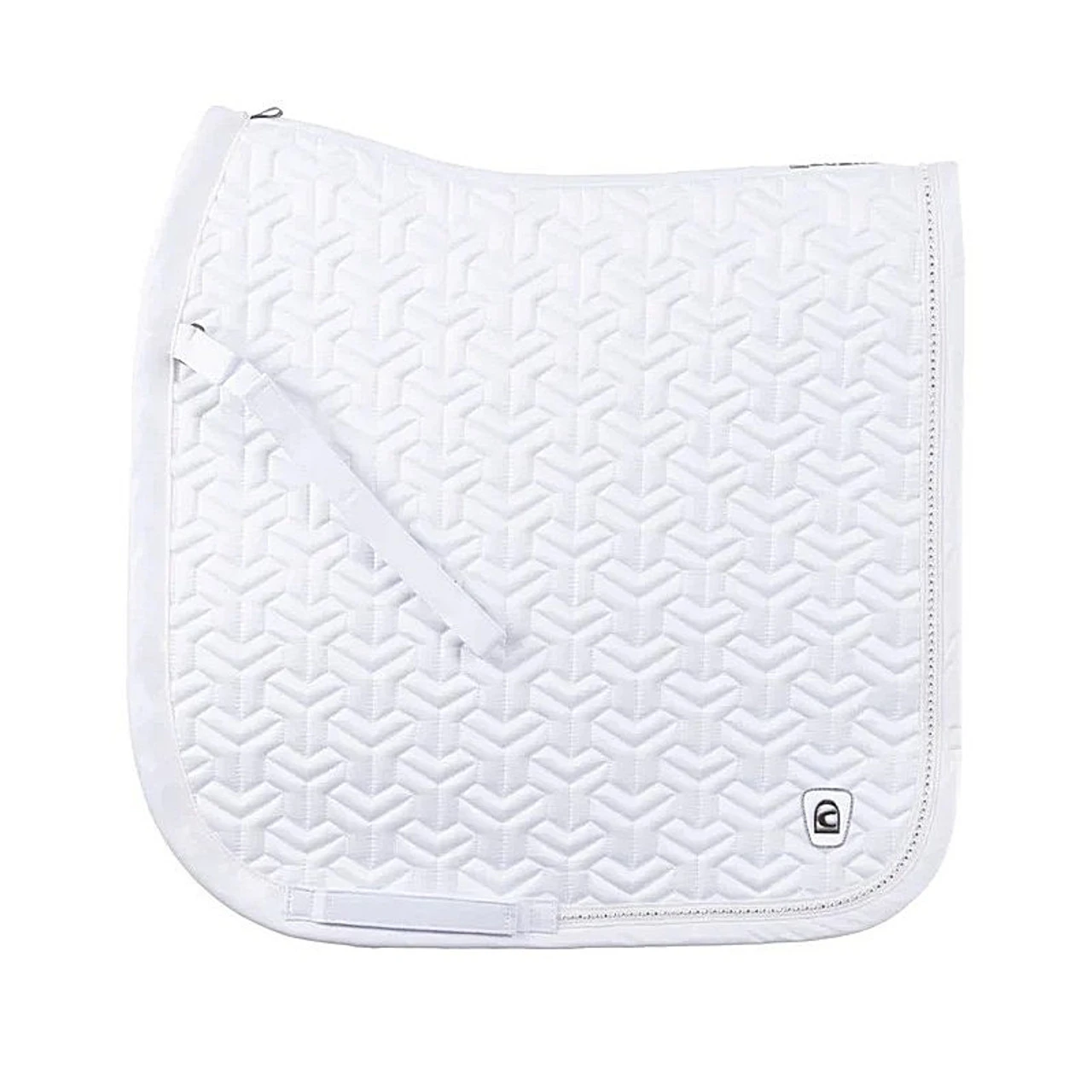 The Cavallo Cool Comfort Dressage Pad has a striking 3-D geo quilting pattern and elegant shine. A gunmetal Cavallo logo and crystal trim elevate the look even more. The Cavallo Cool Comfort Dressage Pad is available in Dusty Violet, Night Blue, and White.