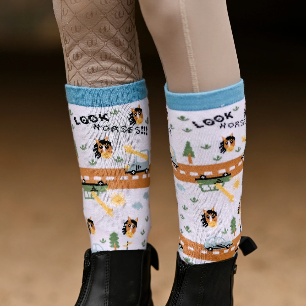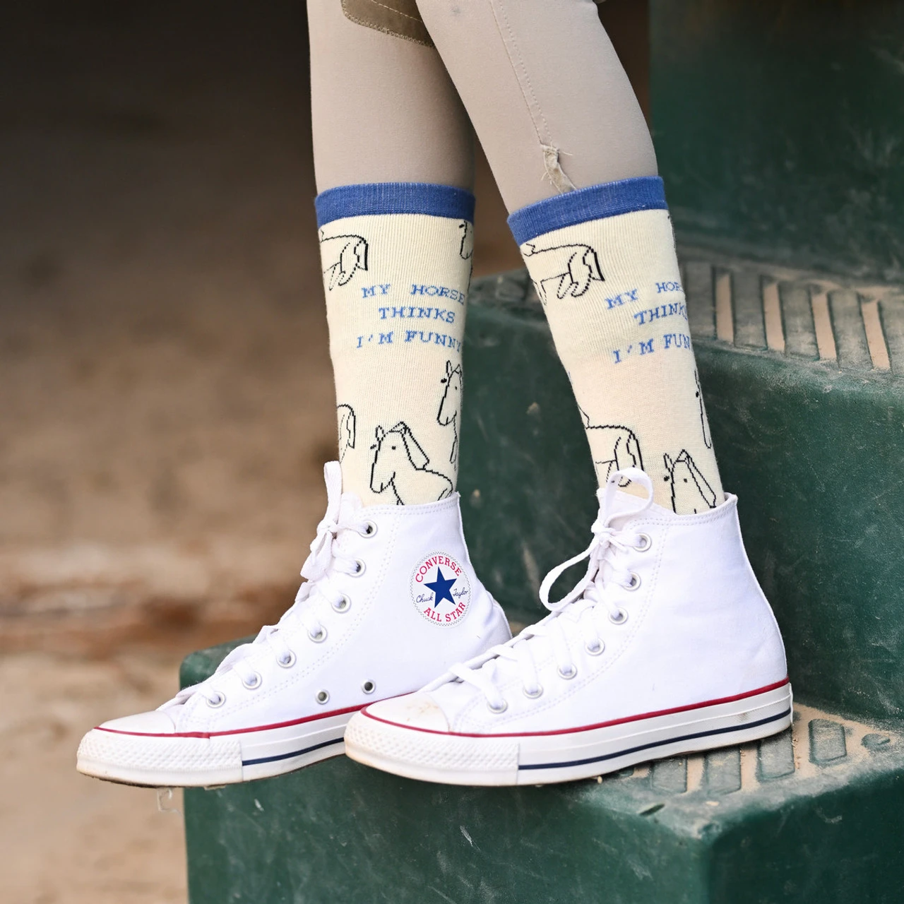 Dreamers & Schemers Ladies Crew Socks are soft stretch cotton for ultimate comfort with paddock boots and sneakers. These knit crew socks from Dreamers & Schemers are one size that fits women’s shoe sizes 6-10.