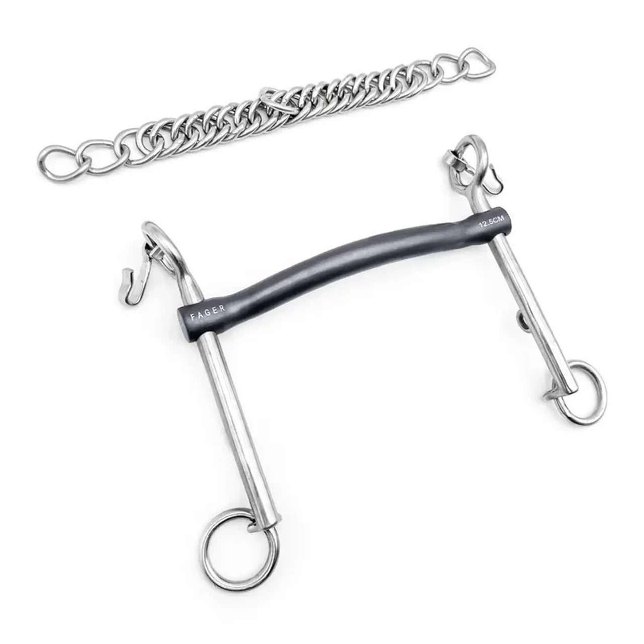 Fager Diana Titanium Weymouth offers superior strength yet is extremely lightweight. It is hypoallergenic and antibacterial, making it idea for sensitive horses. The warm titanium increases saliva and encourages acceptance while also being low maintenance and easy to clean. Fager Diana Titanium Weymouth works well for horses that are new to a double bridle.