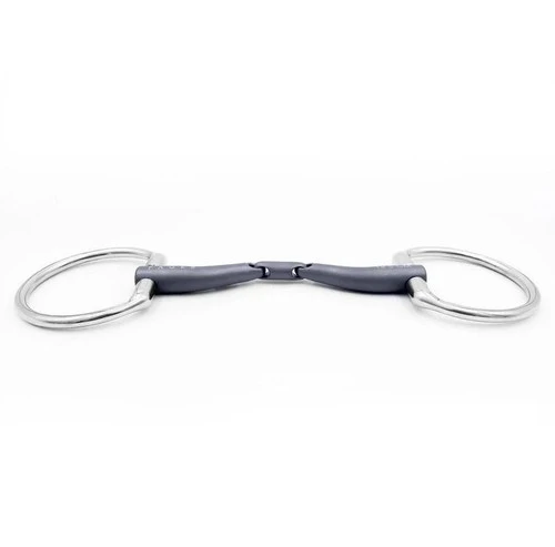 Fager Maria Titanium Fixed Ring bit has a double jointed mouthpiece that divides pressure between the tongue and bars. This comfortable lozenge bit shapes gently around the tongue and does not put constant pressure on the bars. The Maria mouthpiece works well for horses that feel heavy, stiff, won’t soften, and are not comfortable with other bits you have tried. The Fager Maria Titanium Fixed Ring is FEI and USEF dressage legal.