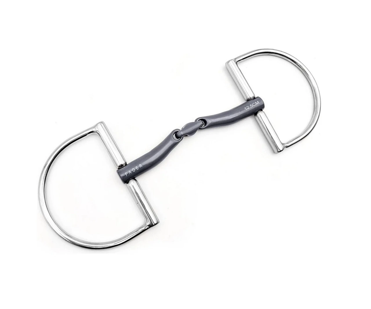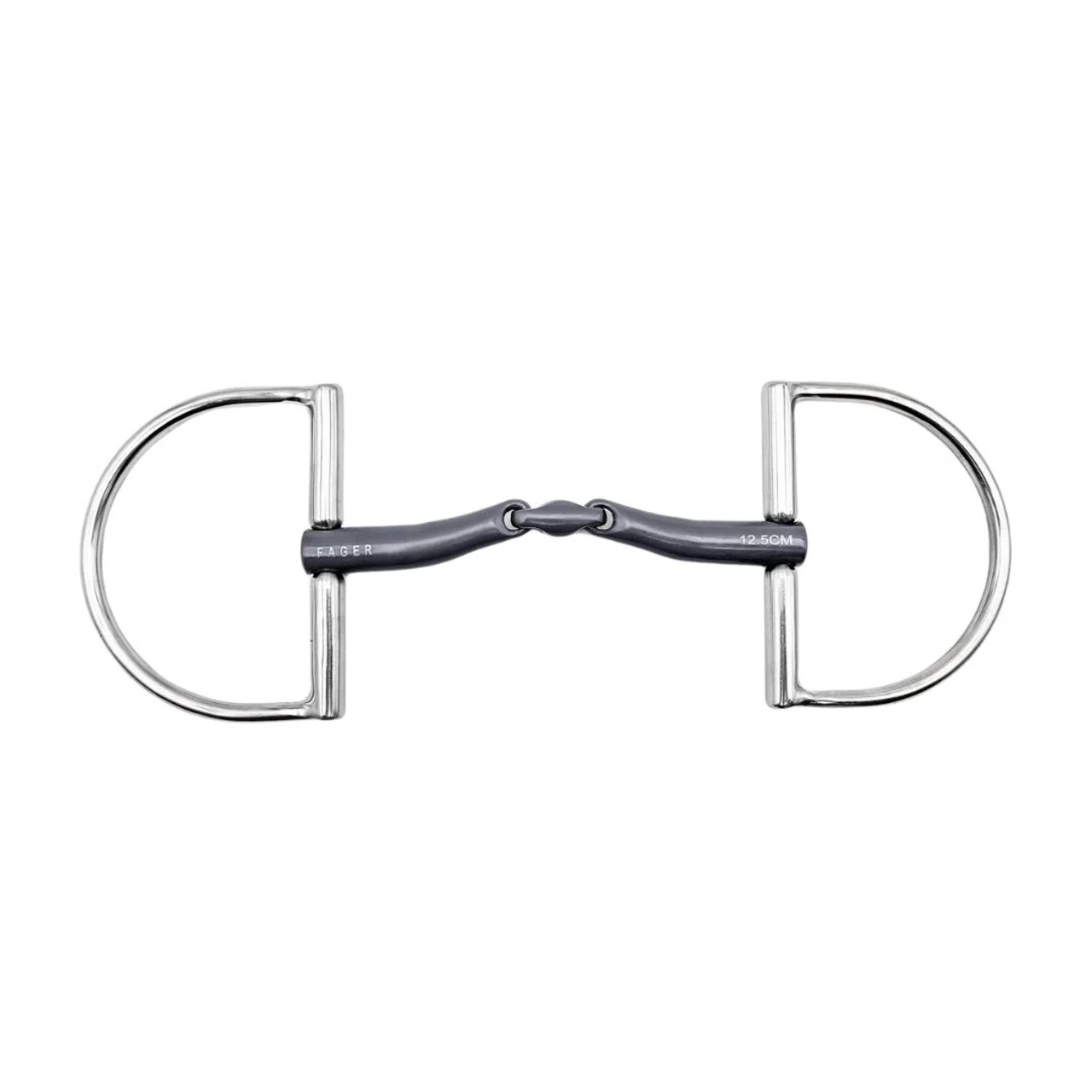 Fager Maria Anoblast Titanium Hunter Dee Ring bit has a double jointed mouthpiece that divides pressure between the tongue and bars. This comfortable lozenge bit shapes gently around the tongue and does not put constant pressure on the bars. The Maria mouthpiece works well for horses that feel heavy, stiff, won’t soften, and are not comfortable with other bits you have tried.