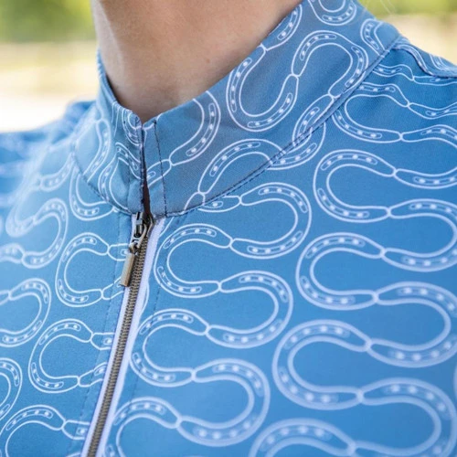 The FITS Ayra Tech Shirt in black with white FITS print is easy to work into your equestrian wardrobe. You’ll love the great fit, the excellent stretch, and the moisture wicking comfort. The overall look is feminine and sporty, perfect for equestrians who enjoy flattering apparel and top performance when they ride.