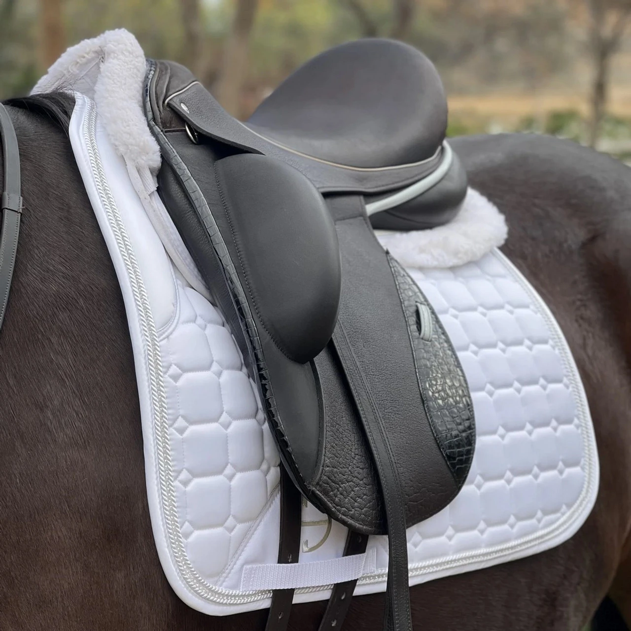 Halter Ego Satin Classic Dressage Pad for horses offers luxury style in sophisticated colors with elegant finishing touches. The quilted square dressage saddle pad has an anatomical shape for a great fit on your horse’s back and graceful rounded edges. The Satin Classic Dressage Pad from Halter Ego has gorgeous shine and a distinctive quilting pattern for wow power.