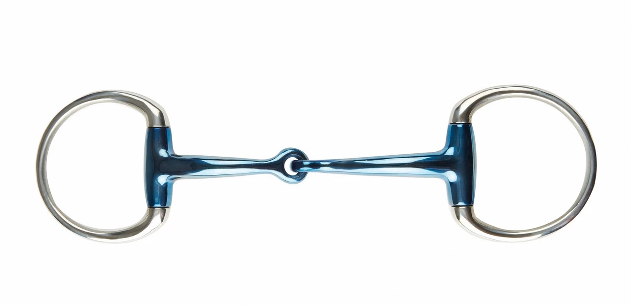 JP Korsteel Blue Steel Jointed Eggbutt Bit is a versatile and practical bit with good balance and a comfortable feel. The blue steel finish oxidizes, creating a sweet iron flavor that encourages the horse to salivate and soften. The English eggbutt has a single joint snaffle mouth that curves for greater tongue relief.