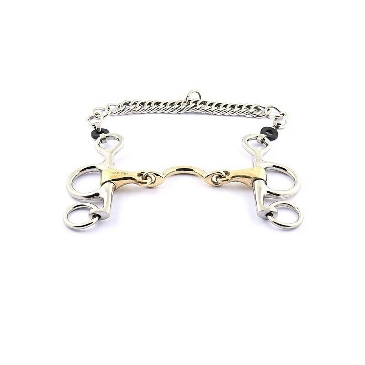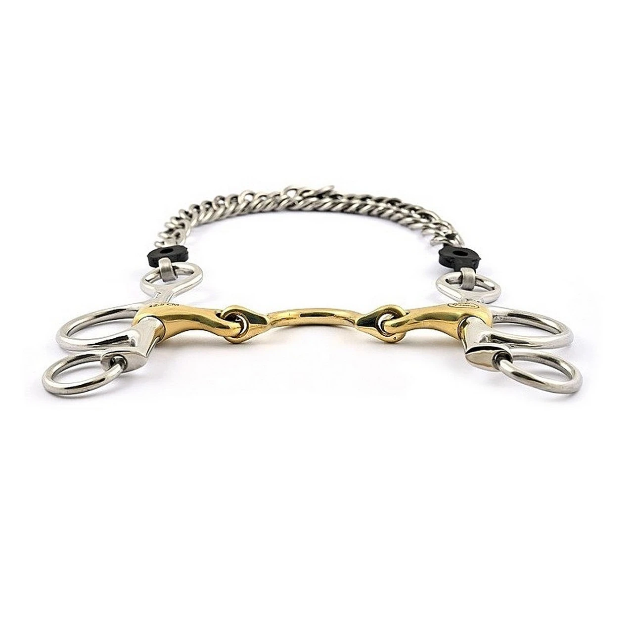 Jump’In High Port Tom Thumb Pelham offers leverage and a ported mouthpiece that leaves plenty of room for the tongue. The shorter cheeks of the Tom Thumb bit are not as strong as a standard Pelham bit.