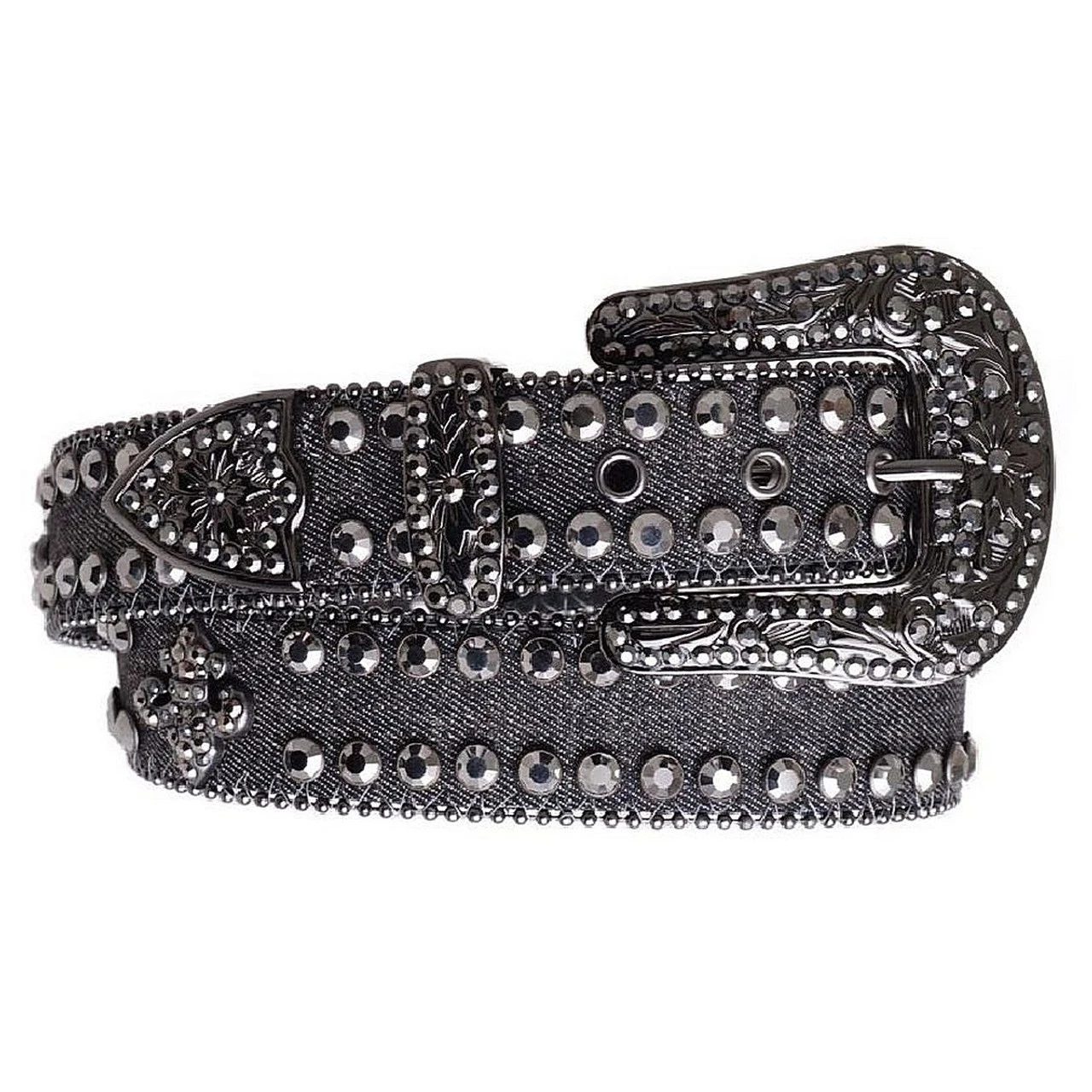 Kamberley Women’s Rhinestone Denim Fleur de Lis Belt is perfect for Western horse showing, rodeo time, or fancy ranch wear style. Kamberley Group makes custom belts for many retailers as well as their own designs for adults and children. The Los Angeles belt manufacturer offers bold signature style at a great price.