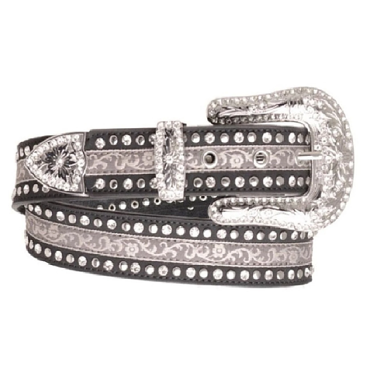 Kamberley Rhinestone Filigree Leather Belt looks flashy yet refined, the perfect finishing touch to a special outfit. Ladies cowgirl belt is made by Kamberley Group, a Los Angeles company that specializes in fine dress and fashion belts made with quality materials and years of metal and leather expertise.