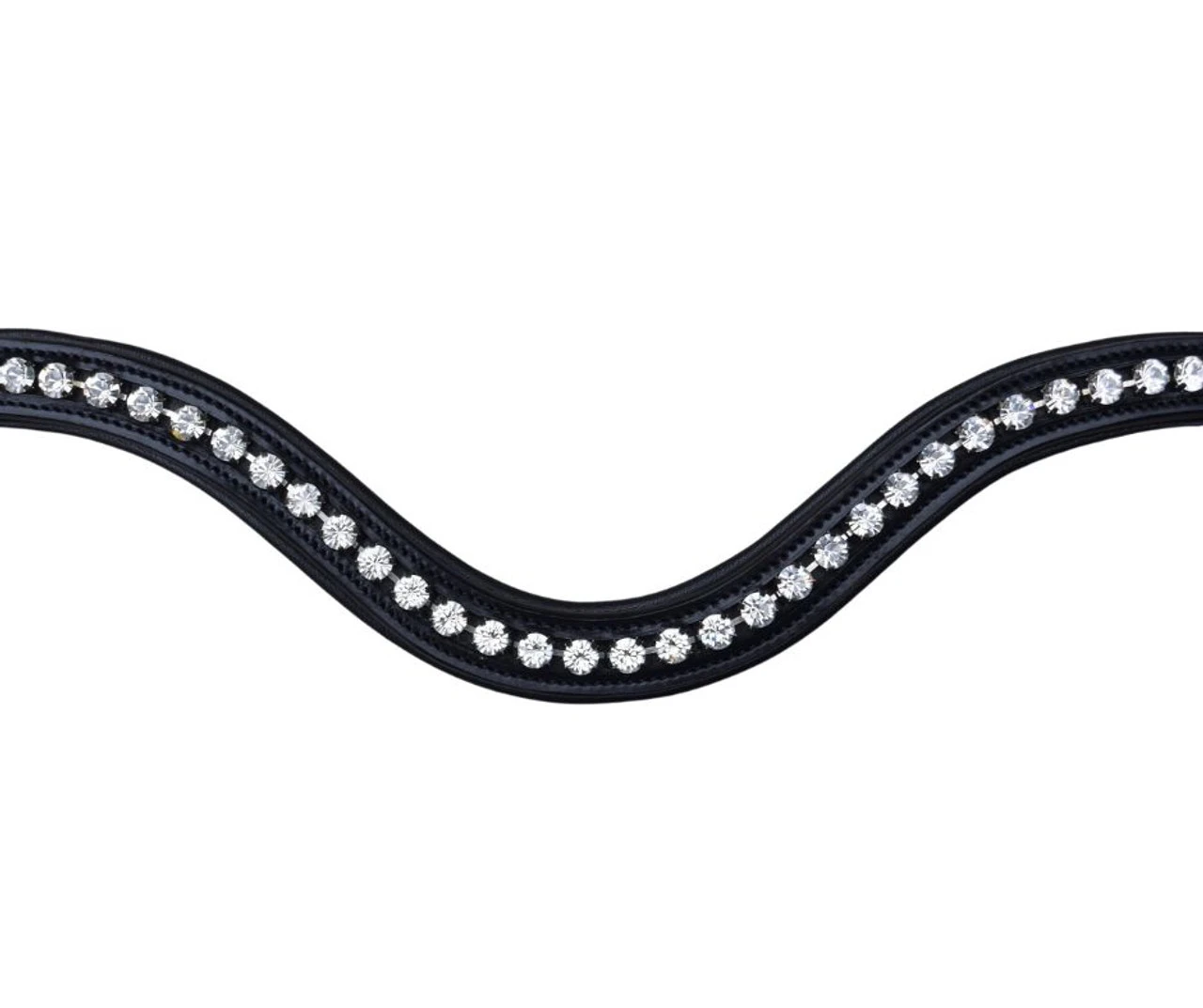 Flexion Rolled Weymouth Bridle from KL Select has a beautiful softly padded wide noseband which measures 1-7/8″ at its widest and gently tapers at each side. The rolled 1/2″ pin end cheek pieces create a cleaner presentation. The elegant look of the Flexion is completed with the gorgeous Prix curved crystal browband. Mary’s sells the KLS Flexion Rolled Weymouth Bridle with 2 sets of matching rolled 5/8″ Dressage Reins.