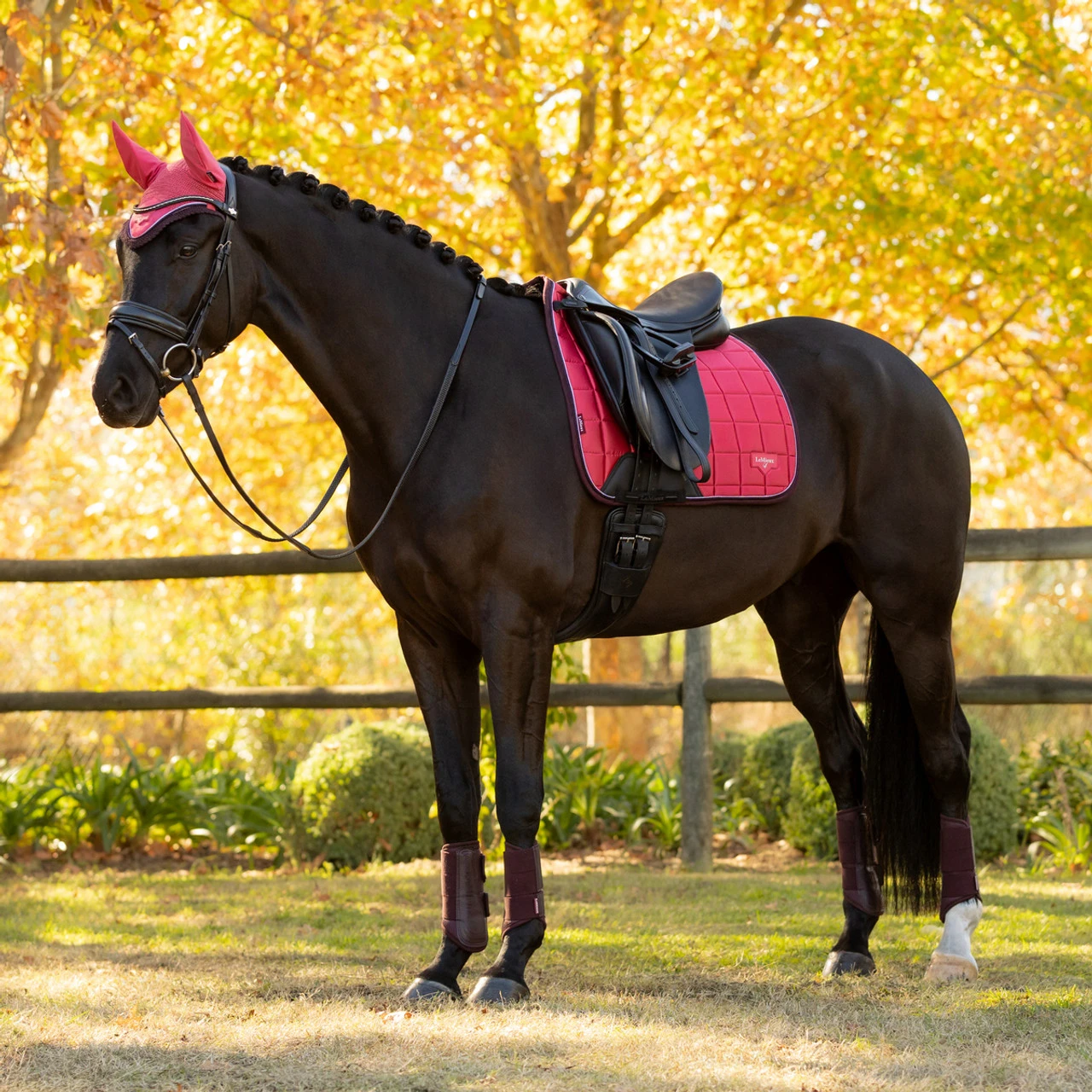 New LeMieux Loire Classic Dressage Square Pad is here in Autumn/Winter 2025 LeMieux colors Damson, Cranberry, Juniper. The luxurious Woven Satin dressage pad has a rounded back and a beautiful sheen to enhance the colors. The increased spine length and new streamlined soft-touch D-ring component makes this elegant LeMieux Loire Dressage Pad better than ever.