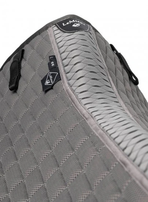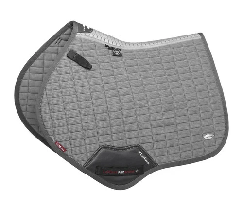 Self-Cooling LeMieux Saddle Pads feature innovative FeelCool Ice material, a cooling crystal that is part of the fabric weave. When your horse gets hot and starts to sweat, FeelCool crystals absorb heat and sweat and transfer it away from the horse’s skin. The greater the moisture level, the greater the cooling that takes place. The inner lining of the LeMieux Self-Cool Square Pad is the same soft, friction-free material. The pad offers lightweight, breathable, cooling comfort from top to bottom. The spine of the pad has a carbon mesh insert that also dissipates heat and prevents pressure on the back and withers.