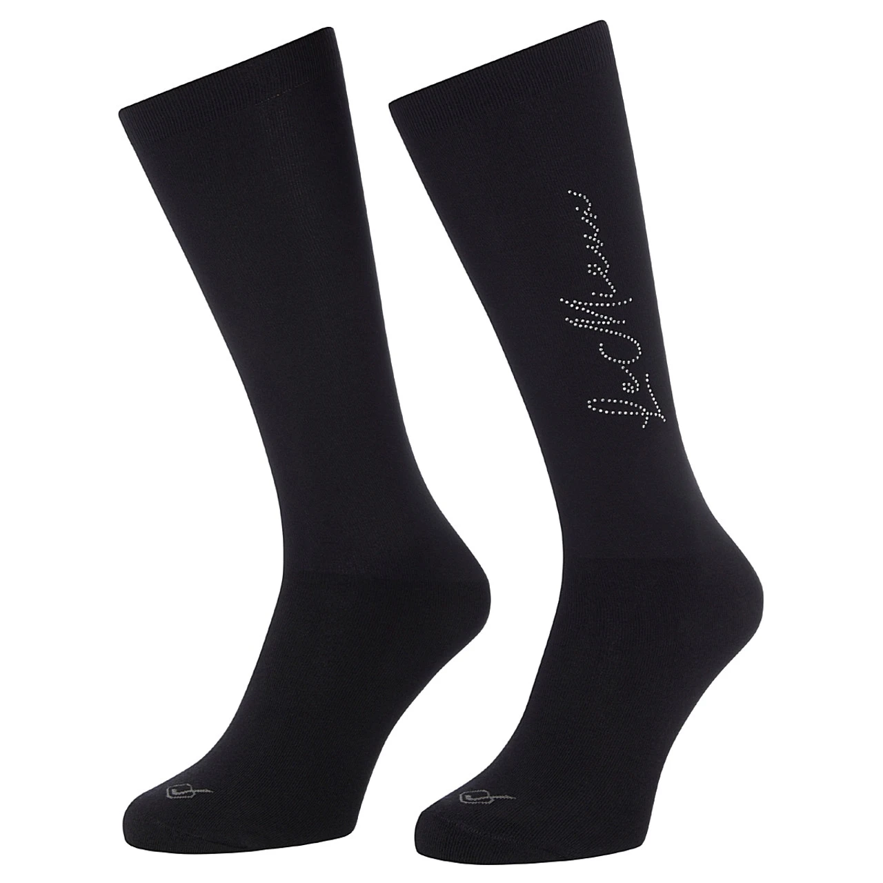 LeMieux Sparkle Competition Socks are lightweight equestrian boot socks with crystal LeMieux accent on the side. The micro-weight socks with compression have an ultra-close fit to go with your snug show boots.