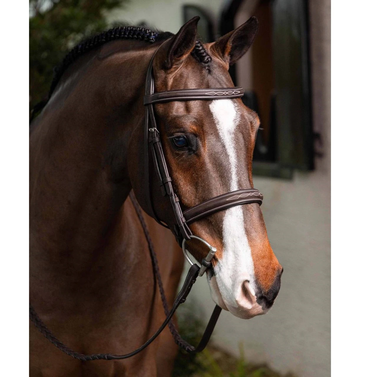 LeMieux Stitched Hunter Bridle has a padded cutaway crown that ensures room for the ears and distributes pressure evenly at the poll. The cheek pieces and noseband are adjustable on both sides to dial in the fit. Precise fancy stitching on the noseband and browband plus durable hardware attest to the high quality. LeMieux Stitched Hunter Bridle with Laced Reins is ideal for delivering a traditional hunter look for competition.