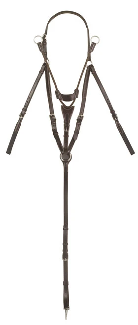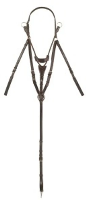 Breastplate with Stretch Cord Running Attachment. This leather breasplate features elastic running martingale forks that offer enough stretch resistance to ease the horse’s head down into a proper level without creating a sharp jerk. Brown. One size, adjustable. By Ovation.