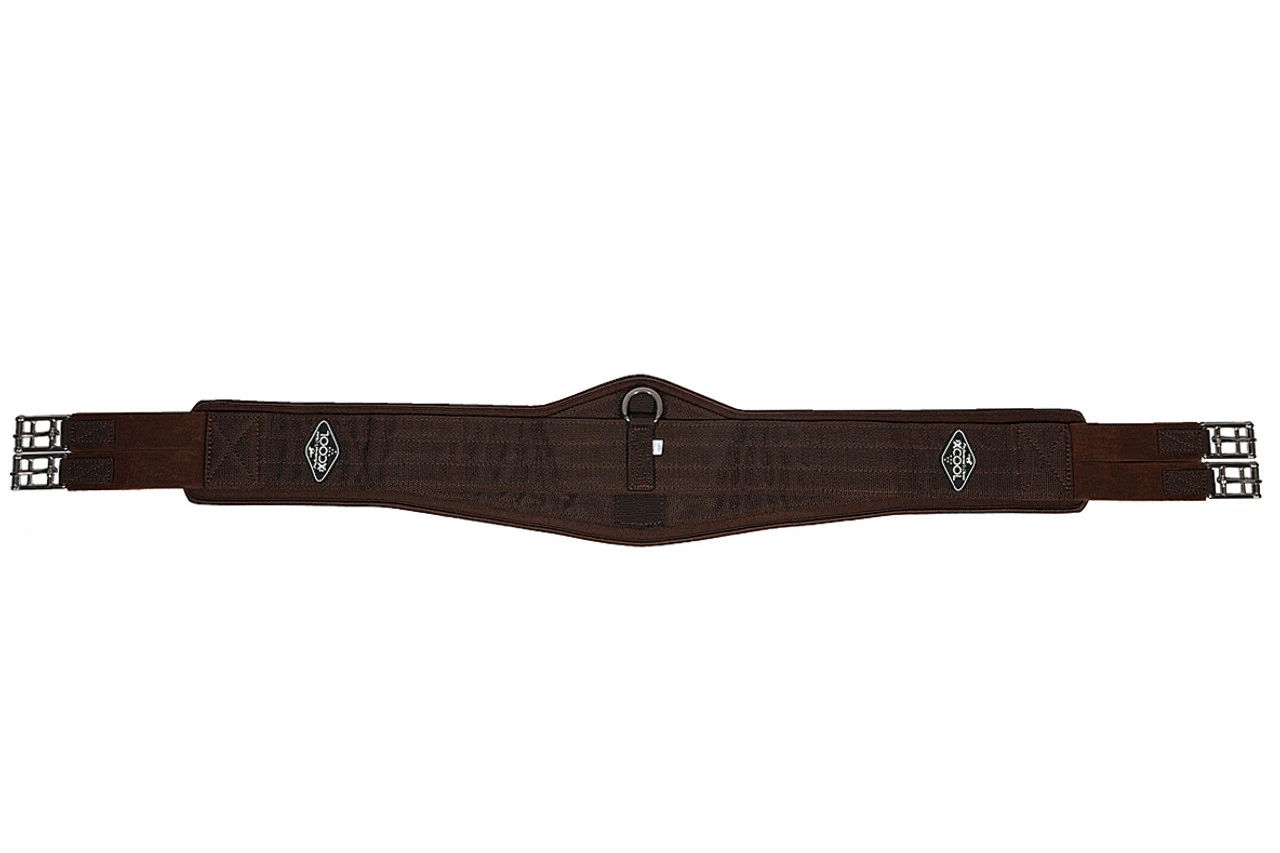 Professional’s Choice 2XCool Girth is ideal for hot weather and hard working horses. The cooling material in the liner is permanent and will not wash out or lose effect over time. The liner has a honeycomb pattern silicone grip to keep girth and saddle in place without pinching. An innovative V-Shape contour distributes pressure and increases shoulder movement range. The 2XCool English Girth from Professional’s Choice has sturdy elastic ends, roller buckles, and a center ring to attach accessories.