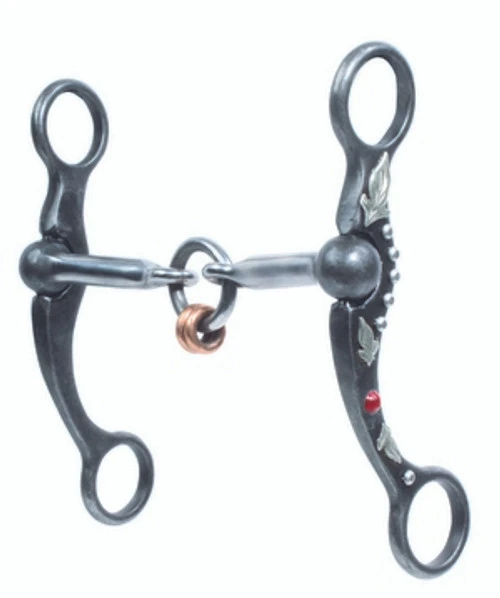 Red Feather Lifesaver bit has the unique lifesaver o-ring mouth piece. The ring center mouth piece adds targeted tongue pressure when needed to get the horse’s attention and achieve a quicker result. Professional’s Choice western bit is from the Colored Stones collection and features red stone decorations on the 6 inch shanks. Western leverage bit allows a small amount of rein pressure to achieve a result, using tongue, palate, and poll pressure. Western lifesaver bits are frequently chosen as an option for horses that are transitioning from a snaffle bit. This great looking bit has sweet iron to increase bit acceptance and create a wet mouth for your horse’s comfort. Don’t forget the curb chain! Mary’s Tack has a great selection in our section.