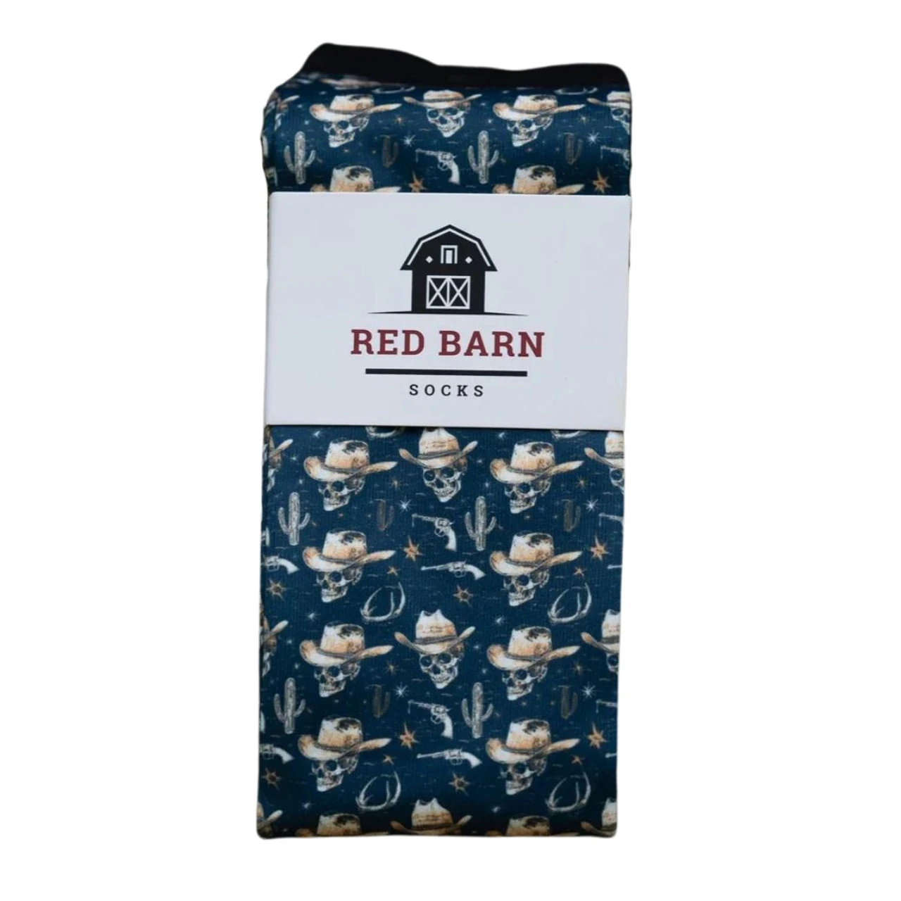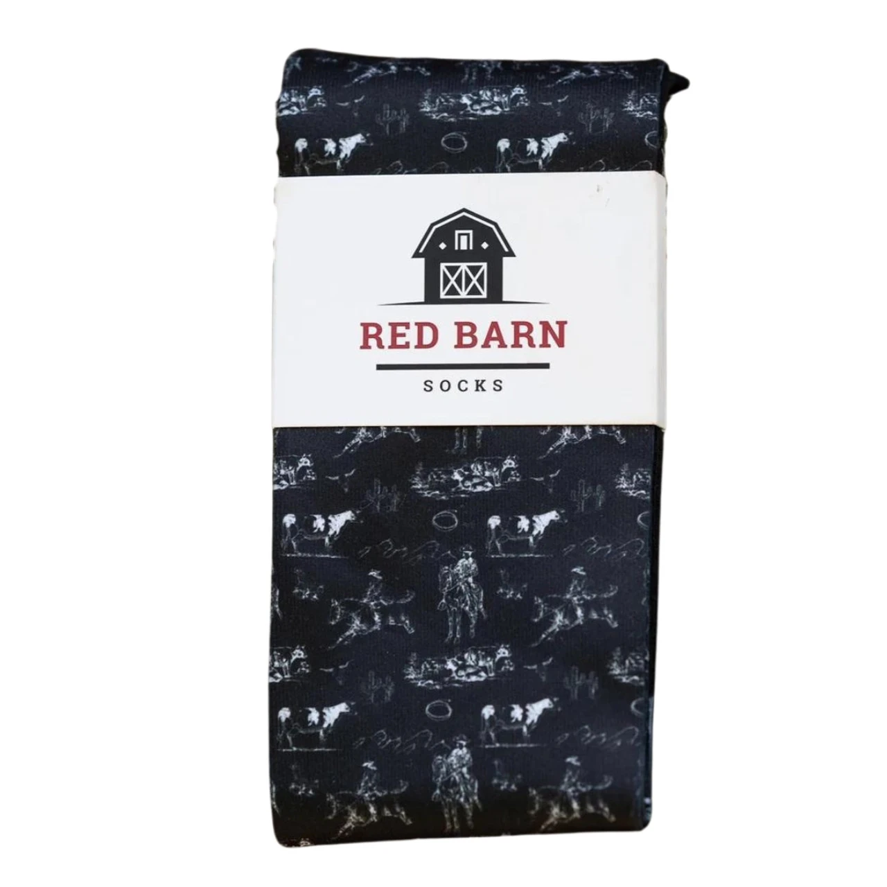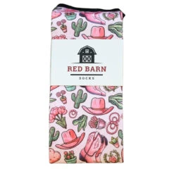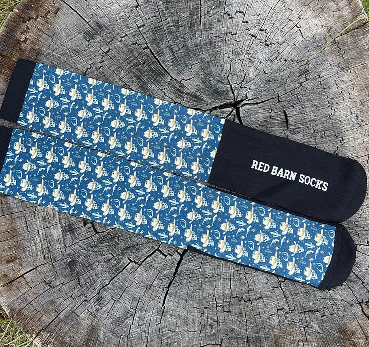 Red Barn Boot Socks are made from a premium blend of cotton, polyester and spandex that is breathable and keeps its shape. The cuff and sole of the sock are black while the rest of the sock is chock full of cowgirl flair! The wide variety of prints have classic Western charm to express your personality. Enjoy the great fit and performance, support a small business, and let your feet have a little fun with Red Barn Boot Socks!