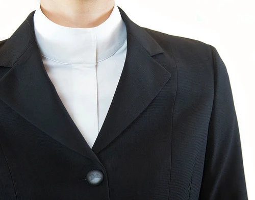 The inside of the RJ Classics Sydney Coat has a stretch half lining that offers good mobility. Finely finished seams complete the quality details. RJ Classics delivers a beautifully classic show coat with all the traditional appointments in a lovely lightweight fabric that looks elegant and polished yet moves with you comfortably. Choose Black or Navy.