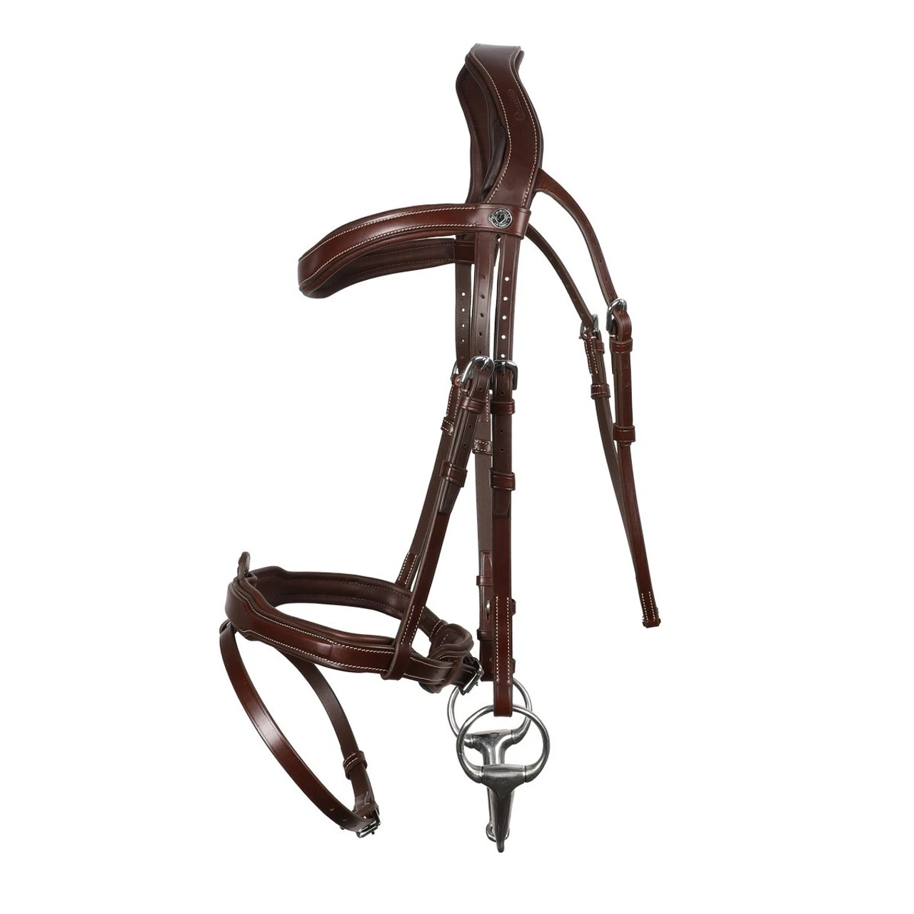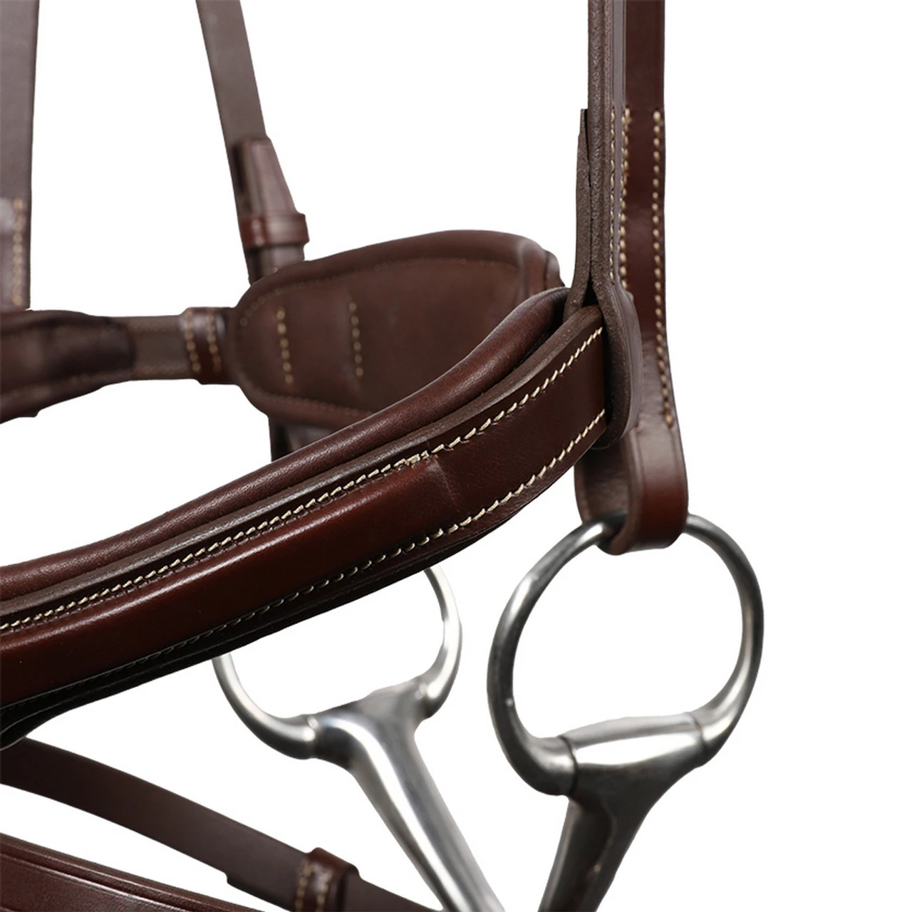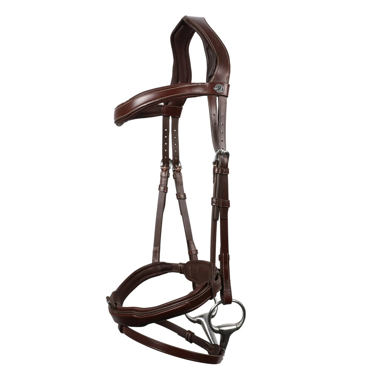 Signature by Antarès Sport Flash Bridle has a shaped browband and noseband for distinctive style. Padding under the cavesson buckle ensures no pinching or discomfort. The crown is also anatomically shaped and lightly padded. The 2-part throat latch with easy-close clip is removable to accommodate the most sensitive horses. Reins are sold separately. The Flash Bridle is part of the Signature Sport by Antarès line of horse tack in fine Italian leather with classic timeless designs and modern comfort.