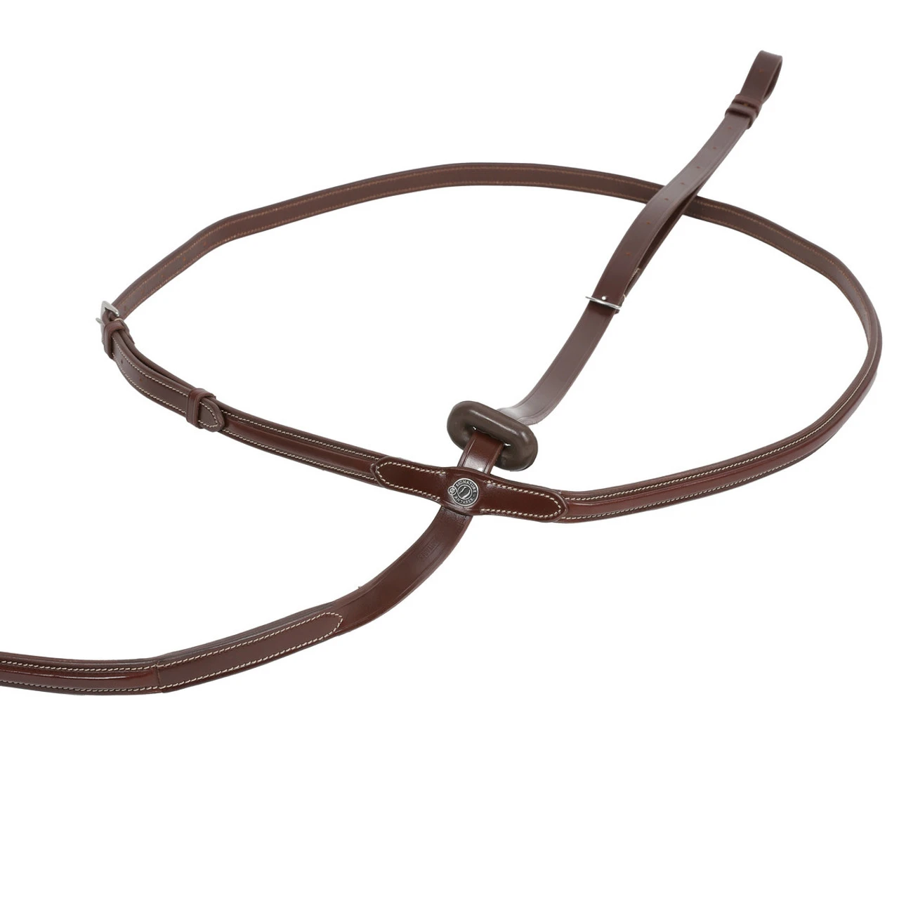 The Signature Sport by Antarès Standing Martingale is ideal for showing and matches the Sport Hunter Bridle and Sport Laced Reins. Beautiful raised fancy stitched standing martingale is a rich brown Italian leather with cream stitching. The Antarès Signature Sport Standing Martingale comes in Pony, Cob, Full, and Oversize.