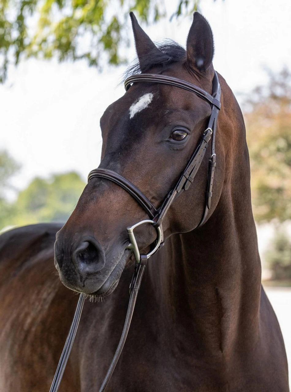 The New Vespucci Plain Raised Hunter Bridle has the innovative Resistance Free crownpiece designed by Peter Menet. The material flexes and conforms to allow unrestricted ear movement as it eliminates pressure points. The Vespucci Resistance Free crownpiece is suitable for horses of any size or conformation. Vespucci New Plain Raised Hunter Bridle combines a single crownpiece, padded nose and browband, and adjustable protection under the jaw for optimal fit, function, and comfort.