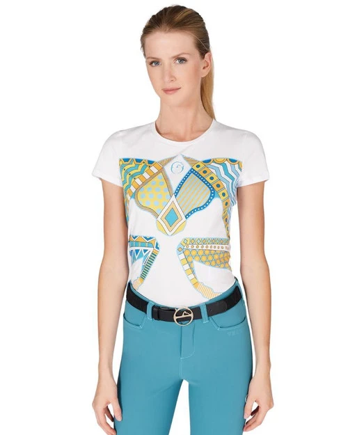 Soft, durable, and comfortable, the Vestrum Nocera T-Shirt will look cute with breeches, riding tights, jeans and shorts. Designed and made in Italy with attention to detail, this lovely casual top features a striking double horse head graphic on the front. The Nocera Tee is the perfect warm weather wardrobe piece that exemplifies the upscale equestrian motifs, quality, and versatility of Vestrum.